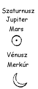 Ehhez jön még az emberben az, ami a ritmikus rendszerre támaszkodik: idegi berendezkedésének tagozódása, amely kapcsolatban áll a többi planétával. Ilyen módon mintegy a következők találhatók az embernél: egészen fent, a fejben, kapcsolatban a teljes idegrendszerrel, a központi idegrendszerrel a Szaturnusz (lásd a rajzot), az, ami inkább az érzékszervekhez, a szemhez kapcsolódik: a Jupiter, s ami a beszédszervek, az éneklés szerveinek alapját képezi: a Mars, és ami inkább átvezet a szimpatikus idegrendszerhez: a Vénusz és a Merkúr. Ez lenne tehát az ember természetének összessége, ahogy átkerült a Holdról az, ami ennek alapját alkotja. S meg kellene különböztetnünk öt összekötő vonalat, amelyek az öt planétára mennek vissza: