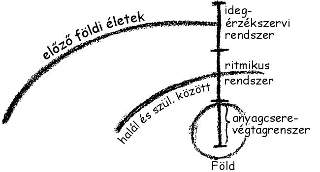 Anyagcsere-végtagrendszer, ritmikus rendszer, ideg-érzékszervi rendszer. Akkor az ideg-érzékszervi rendszerben az hat, ami a korábbi földi életekből jön, a ritmikus rendszerében az, ami a halál és az új születés között volt, és ami a Földön van, csakis és egyedül az anyagcsere-végtagrendszerben hat. Nos, mindaz, amit a halála után ez az individualitás, aki most itt Ferdinand Raimund, keserű megbánásként, felvilágosító, mélyen lesújtó belátásként megélhetett ama korábbi inkarnációbeli vágya miatt az állatkínzás iránt, mindaz kihatott a halál és egy újabb születés közötti állapotára, és befolyásolta a ritmikus rendszert. A ritmikus rendszerben azáltal fejeződött ki, hogy egészen a fizikaiba belehatott. Hiszen a fej fizikájában a korábbi földi életek utóhatása, a ritmikus rendszer fizikájában a halál és az új születés közötti élet utóhatása van. Az embriológiában könnyen megérthető ez az igazság, külsőleg, fizikai-érzékelhető módon is. Ferdinand Raimundnak ennél az individualitásánál láthatjuk, hogyan hat bele különösen a légzési rendszerébe, a felső ritmikus rendszerébe mindaz a megbánás, a keserű belátás, ami elöntötte, amikor a megfelelő előző földi életből ki-, a halál kapuján átlépett. És ezzel elkezdődik annak kialakulása, aminek egyfajta légzési rendellenességhez, túl alacsony oxigénfelvételhez, szénsavval való túlságos telítettséghez kell vezetnie, légzési rendellenességekhez, amelyek önmagukban, fizikailag tekintve, előhívnak minden szorongásos állapotot, amelyek azonban a szorongás elemi lényei lehetnek. Mindaz, ami a légzési rendellenességekben él, ami megakadályozza, hogy a légzési folyamatban a megfelelő mennyiségű oxigén és szénsav alakuljon ki, a szorongás elemi lényeit hozza elő. Jól megfigyelhetik ezt A havasi rémkirályban. Ferdinand Raimund egészen különösen alkalmas volt, hogy úgy mondjam „diszponálva” volt, tudományos kifejezést használva, arra, hogy légzési rendszere a szorongás elemi lényeinek hordozója legyen. A szorongás ilyen elemi lényei nem csupán a szorongás elemi lényei, hanem, ha valaki ugyanakkor azt is magával hozza, ami Ferdinand Raimund fejében volt a korábbi földi életekből származó fizikai-szellemi nézetekként, amelyek olyan érdekessé teszik a drámáit, akkor látjuk, hogy a karma egészen meghatározott irányba halad ezeknek, az ilyen módon meglevő szorongás-démonoknak a behatására. Formálisan látható, hogyan törekszenek ezek a szorongás-démonok kihatásra, a karma értelmében beteges kihatásra. Beáramlanak, úgy mondanám, a fantáziadús imaginációkba, egészen a magukat a látomásokba beleélő imaginációkba - hiszen Raimund drámái látomáson alapulnak -, beáramlanak a látomásokba, és ezzel azt okozzák, hogy az ember az életben is valami fantasztikusat fejleszt ki. És ilyen módon egy áramlás megy keresztül a karmán, egy roppant zseniális tehetség éli ki magát. Az egyik áramlás a szellemi alkotás különös módjában éli ki magát, a másik áramlás párhuzamosan, az életben egyfajta ábrándkergetésben él, amely azonban nem külsőleg éli ki magát, hanem befelé tekint, mert a ritmikus rendszerben van, ami ugyanis félig belső, de ami az alsó szerveiben megint úgy éli ki magát, hogy kiterjed a külső életre, de befelé is visszaüt, miáltal zseniális individualitását valóban patologikus vonás kíséri. És ez a vonás, ez a patologikus vonás, amely a szorongás-démonokban élte ki magát, ez lett a karma kiélésének hordozója. Ferdinand Raimund karmája közvetlenül kiolvasható. Raimund kénytelen kutyát tartani. Fantaszta. Olyasmit tesz, amit mások nem. Ez érthető, még szimpatikus is lehet. Mert azt mondhatjuk, kedves barátaim, némelyik kereskedelmi tanácsosnak kinevezett polgár étkezésénél a királyi asztalnál szimpatikusabb, ha azt látom, hogy Raimund fantasztikus kedvtől hajtva a kutyájához ül, és vesz a kutya ételéből, hogy elfogyassza. Ezt teszi Raimund. Nézzék meg, hogy játszik bele ebbe az állatkínzás karmája a korábbi inkarnációból. Nézzék meg, milyen egyszerű ez a tény, amely a halál utáni megbánásból és a korábbi állatkínzásból alakult át, milyen fantasztikus vezeklés megy végbe, de ez a fantasztikus vezeklés még keserűbb módon megy végbe. Mindjárt ezután jönnek a szorongás-démonok, és belehatnak a karma teljesülésébe. Ferdinand Raimundot elfogja a gondolat: a kutya veszett, vele ettem, most elkaptam a veszettséget! - Látják, Raimund egészen le van sújtva. Míg bizonyos körülmények között a színpadon a legzseniálisabb - abban a pillanatban, hogy kiszakad az életből, megrohanják a kényszerképzetek, az az érzése, hogy elkapta a veszettséget. Azután például útra kel egy barátjával. Bécsből Salzburgba utaznak, ott elfogja ez a gondolat, hogy elkapta a veszettséget, gyógyulást keresve vissza kell térnie Bécsbe. Ha figyelemmel kísérjük ezt az utazást, gyötrelmes neki és a barátjának is. Mindenütt azt látjuk, hogy a patologikus a zseniális sarkában van. Nos, nagyon jól bánnak Ferdinand Raimunddal, mert az emberek rendkívül szeretik. Lassanként leszokik erről a gondolatról. Valóban azt látjuk, hogy meggyógyul, az élettől, a barátoktól, mindattól a jótól, ami különböző oldalakról éri, amit nem szívesen fogad el, mert hipochonder, és az is marad, mert a szorongás-démonok folyton kínozzák, ha nem ezzel, akkor valami mással. Így folyton ide-oda ingadozik a humoros és a hipochonder Raimund között. De legalább megszabadult attól a gondolattól, hogy veszett. Évekig tartott ez a gondolata. De továbbra is rabul ejtik az állatok. Tíz év után ismét van kutyája, és íme, ahogy játszik a kutyával, az tényleg megharapja. Ismét megjel